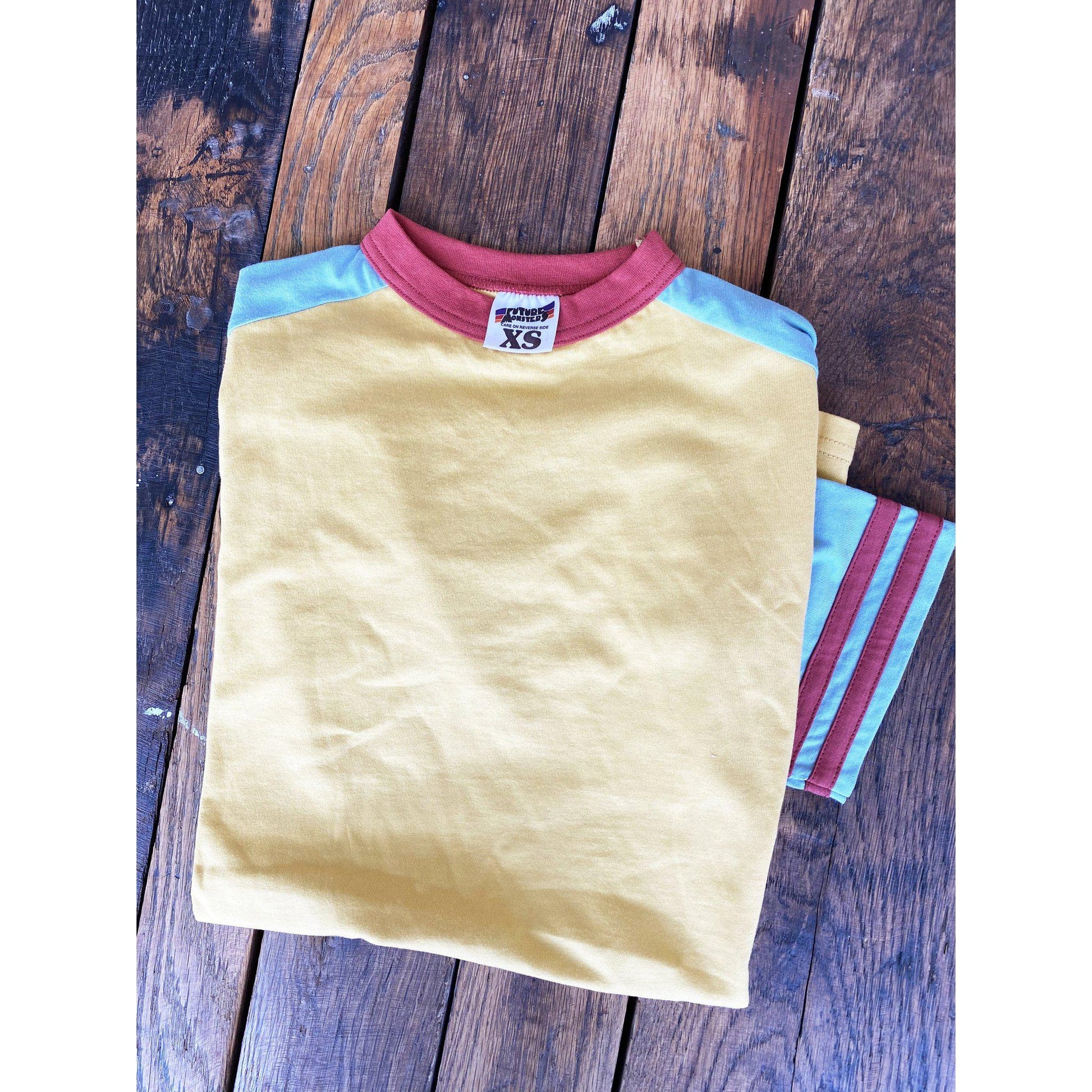 • Yellow/ maroon neck & stripe/ baby blue sleeves